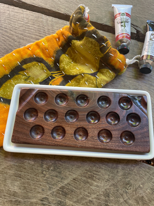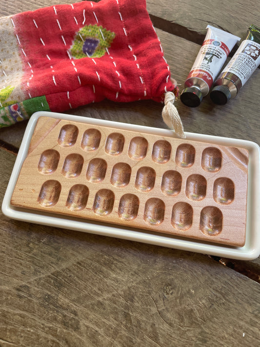 16 Well Watercolor Palette, sycamore and ceramic palette