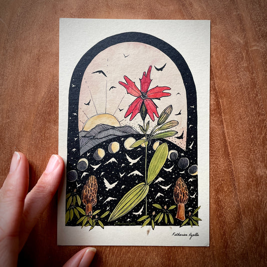 Fire Pink and Morel MushroomsPOSTCARD of plants and scenes the Blue Ridge Mountains