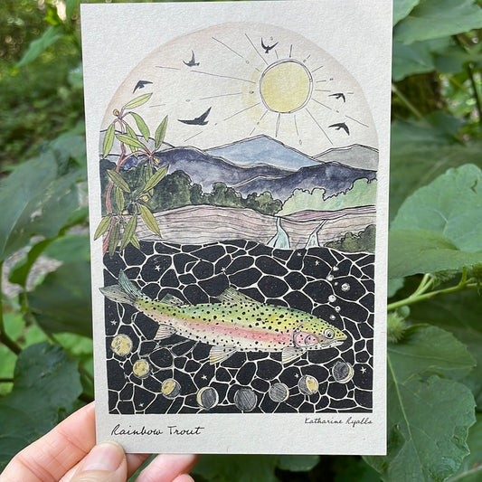 Rainbow Trout POSTCARD of plants and scenes the Blue Ridge Mountains
