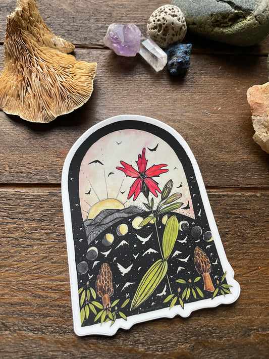 Fire Pink and Morels 4" Vinyl Sticker Phases and Forests