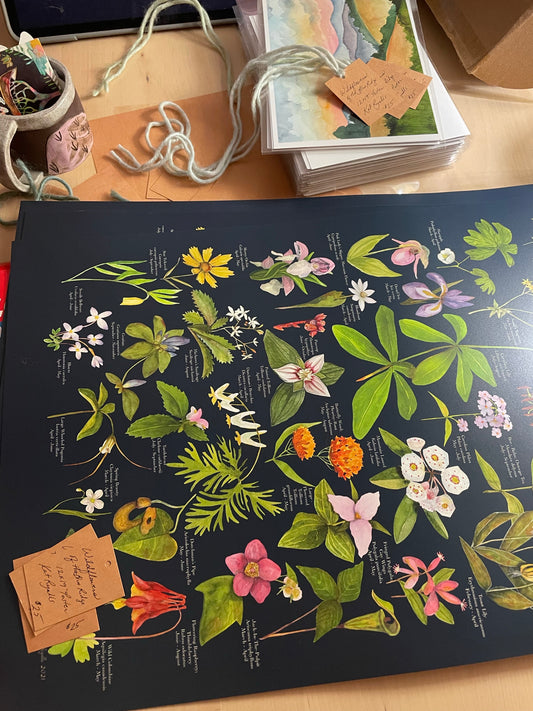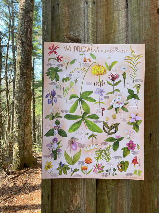 Wildflowers of the Blue Ridge Mountains POSTER 19x12" on Navy Blue