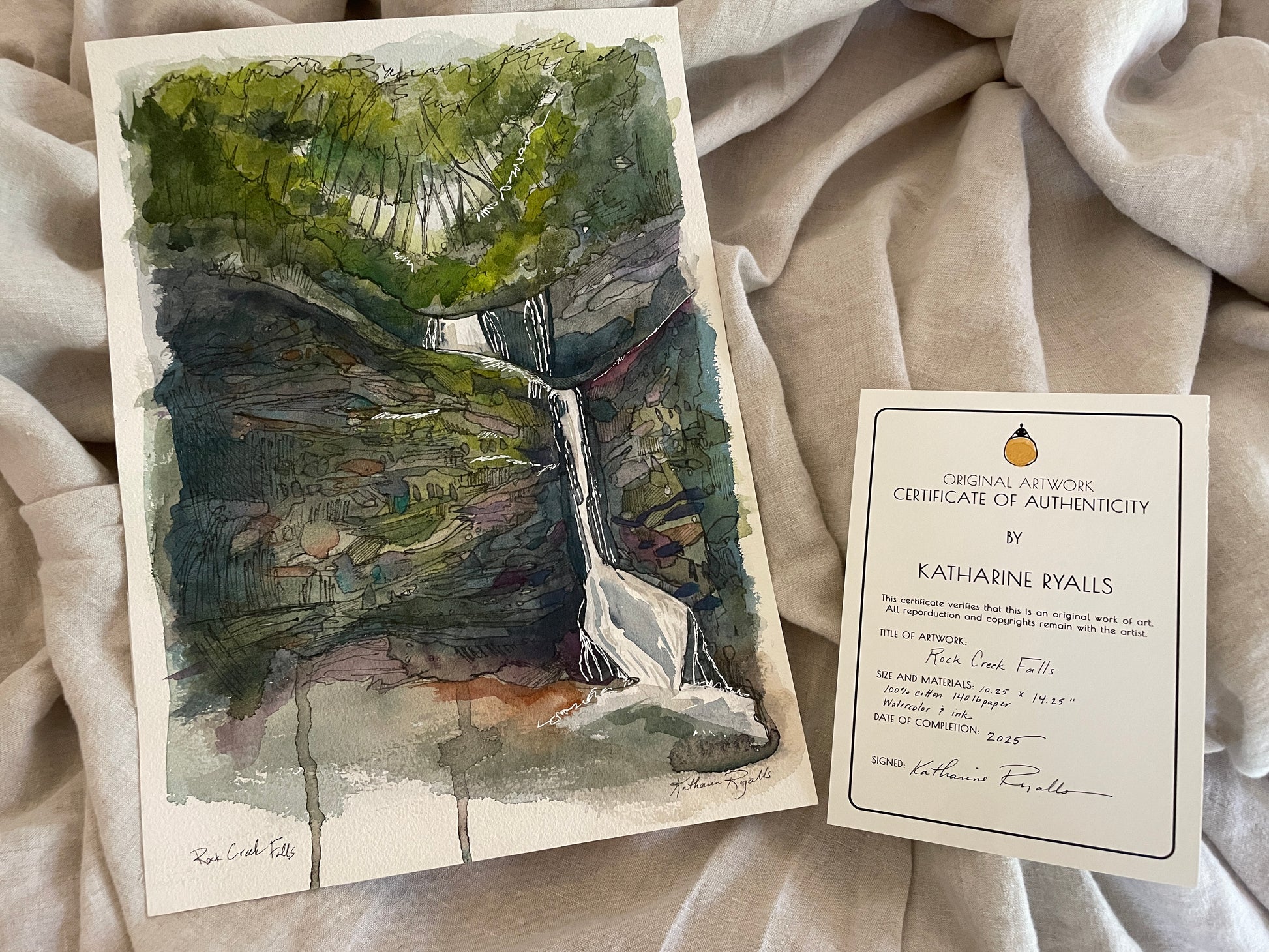 Original watercolor on 100% cotton watercolor paper and carbon black ink details. Includes Certificate of Authenticity.